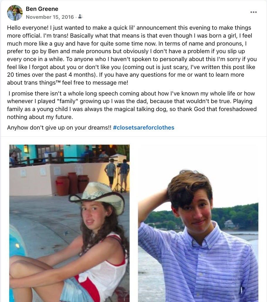The actual date of November 15th has taken on varying levels of formality or significance in my life, and most of the anniversaries that I like to have an actual celebration for are memories of gender affirming care. But in my heart, I still notice. Now, I call it my “rebirthday”, it’s a day that I’ve come into new stages of my life a number of different times, and it gives me a moment to look back at where the journey has taken me. At the things November 2015 Ben would never believe.