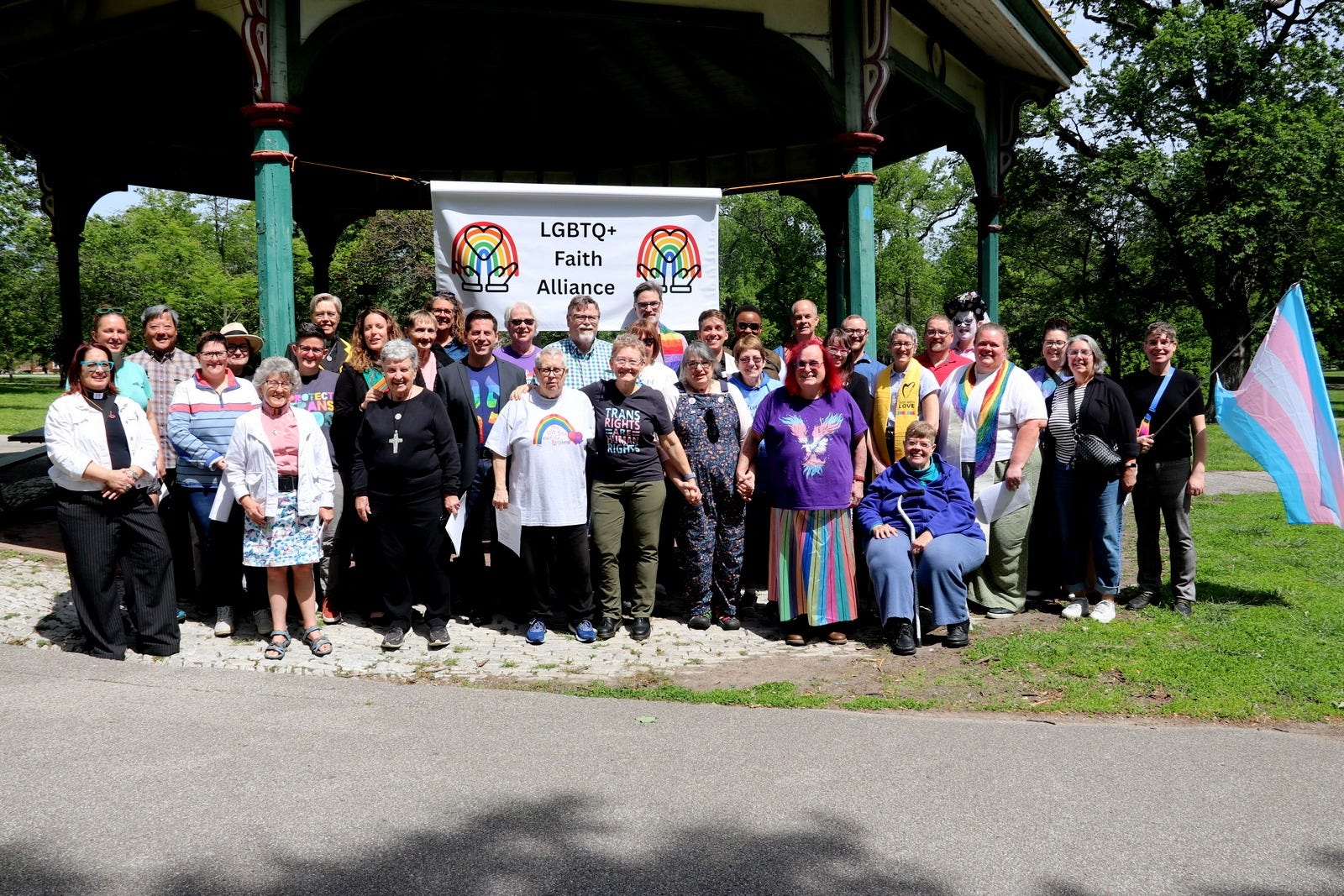 From Deb: “On Tuesday this week, 35 of us gathered in The Park (it was one of those perfect St. Louis spring days) to hold an interfaith program of prayer, song and the public reading of our Statement of Support for Trans, Intersex, and Nonbinary Missourians. It was a hopeful, beautiful morning as people of diverse faith, sex, and gender could gather and say trans, intersex, and gender-nonconforming siblings are made in God’s image, and as such, they are WHOLE and HOLY.”