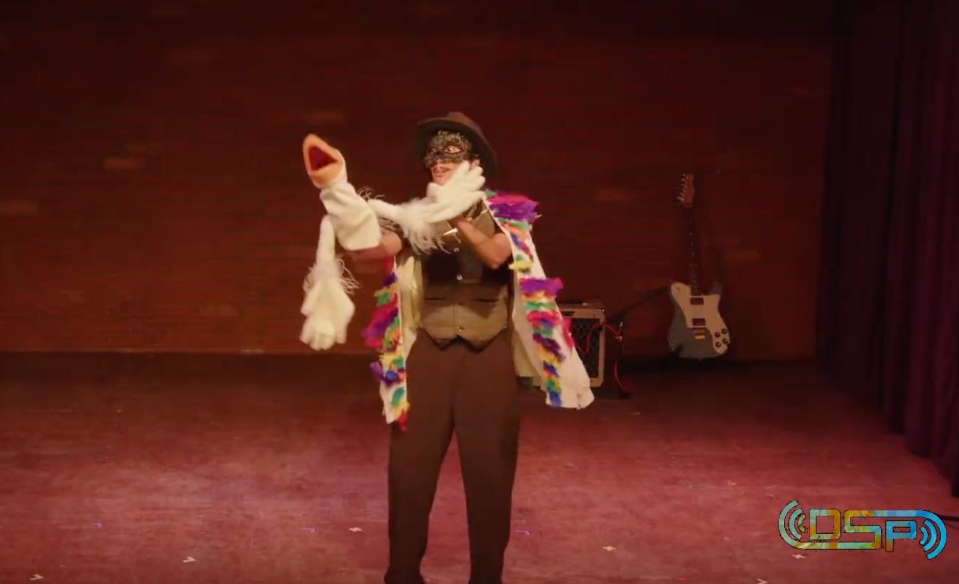 We spent 90 minutes being delighted by stand up, improv, songs about becoming, and a very very popular ostrich puppet from a sketch about figuring out who you are.